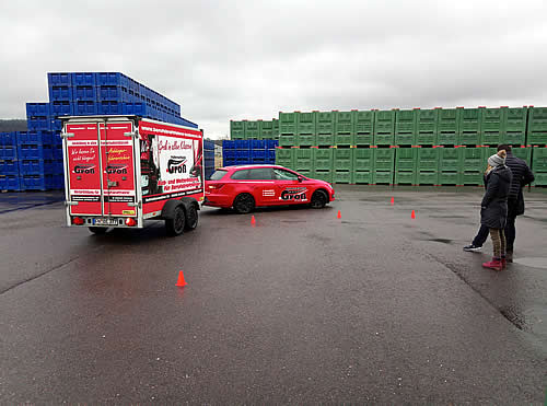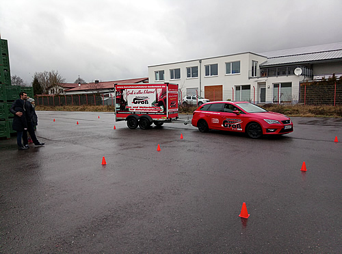 Dies wird direkt im Anschluss an den Theorieunterricht von 10:30 bis 14:30 Uhr durchgeführt (Mittagspause von 12:00 bis 12:30 Uhr) Hierbei werden verschiedene Übungen wie Wenden, Kurvenfahren und Rückwärtsfahren trainiert. |