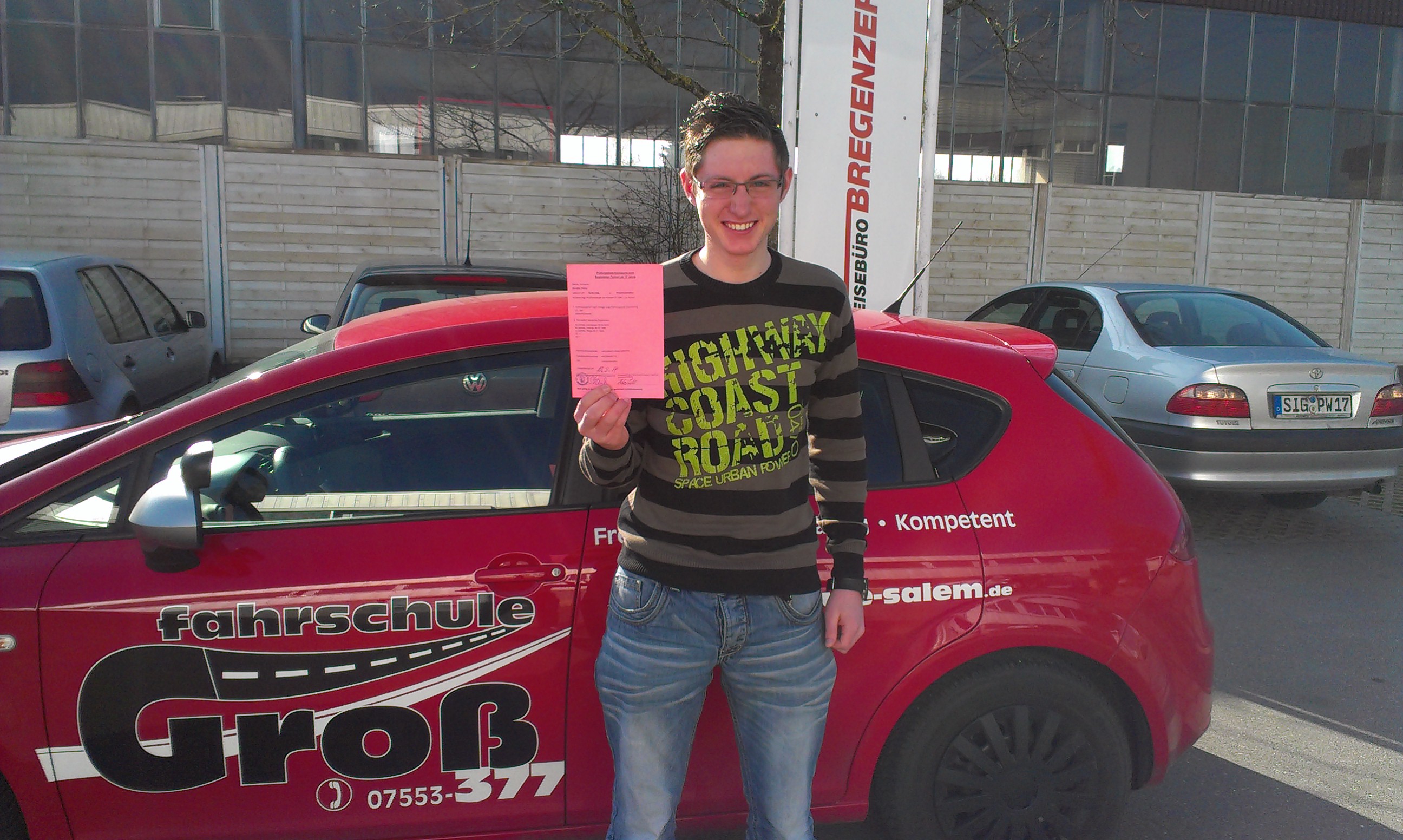 Bestanden-GalerieWir gratulieren unseren erfolgreichen Fahrschülern!Ein Bild sagt oft mehr als 1.000 Worte. Hier strahlen unsere frischgebackenen Führer-scheinbesitzer. Das Team der Fahrschule Groß wünscht allen allzeit gute Fahrt! Klicken Sie auf die Bilder für eine vergrößerte Ansicht. Klicken Sie rechts bzw. links in das vergrößerte Bild um zum nächsten bzw. vorherigen Bild zu gelangen.